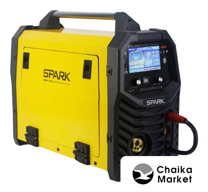 ручная дуговая сварка (MMA)/полуавтоматическая сварка (MIG MAG), 380 В, сварочный ток: 40–250 А, диаметр электрода: 0.8–1 мм, 23 кг