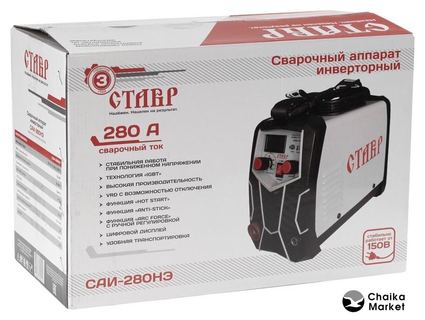 ручная дуговая сварка (MMA), входное напряжение 160–242 В, сварочный ток: 20-160 А, диаметр электрода: 1.6–4 мм, 3.6 кг