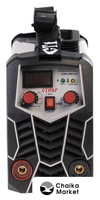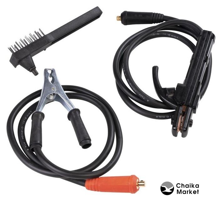 Комплект поставки | Рабочий кабель с электрододержателем, Кабель заземления с клеммой, Металлическая щетка, Наплечный ремень |