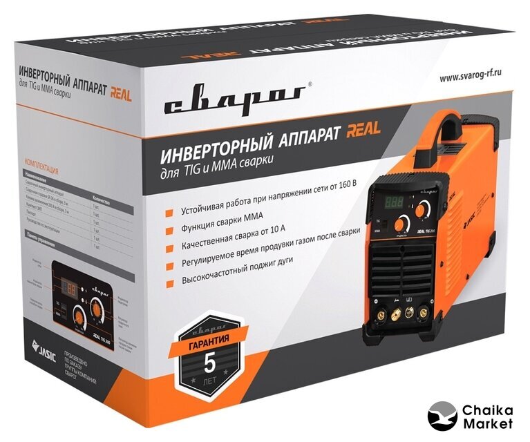 Комплект поставки | Инверторный сварочный аппарат - 1 шт.Горелка SR-26 в сборе, 4 м - 1 шт.Клемма заземления в сборе 200 А, 3 м - 1 шт.Комплект ЗИП - 1 шт.Руководство по эксплуатации - 1 шт.Паспорт - 1 шт. |