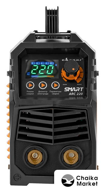 ручная дуговая сварка (MMA)/полуавтоматическая сварка (MIG MAG FCAW)/аргонодуговая сварка (TIG), входное напряжение 220 В, сварочный ток: 20-220 А, диаметр электрода: 1.6–4 мм, 7.2 кг