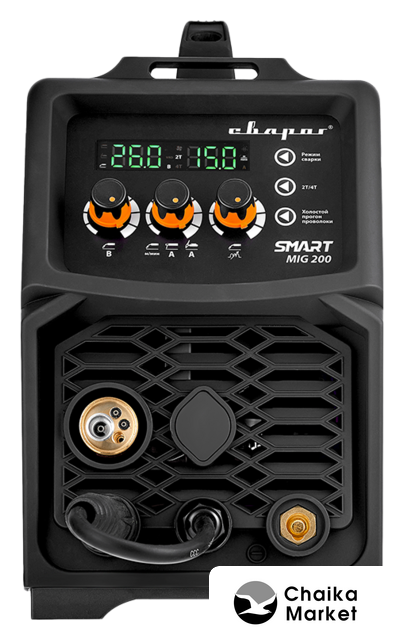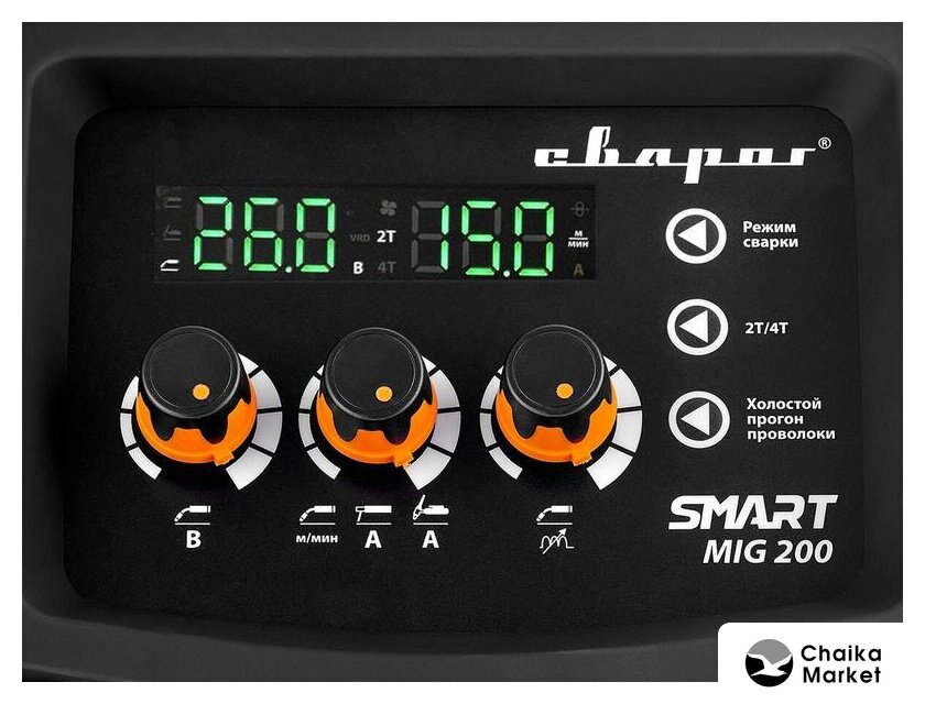 | Сварочный ток | 20 — 200 А (MIG:30–200А, MMA:20–160А, TIG:20–180А) |