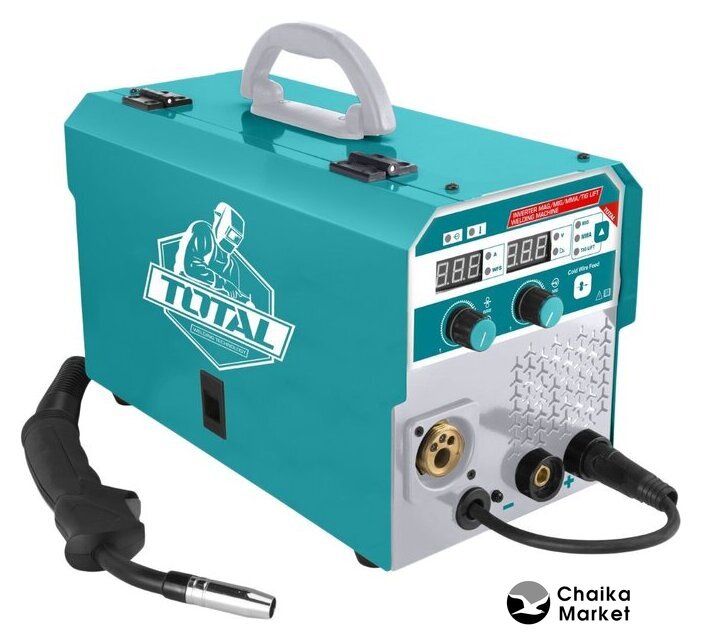 ручная дуговая сварка (MMA)/полуавтоматическая сварка (MIG MAG), 220 В, сварочный ток: 10–200 А, диаметр электрода: 1.5–4 мм, 13 кг