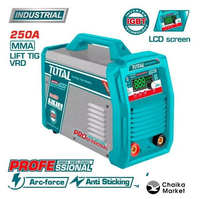 ручная дуговая сварка (MMA)/полуавтоматическая сварка (MIG MAG)/аргонодуговая сварка (TIG), 220 В, сварочный ток: 10–230 А, диаметр электрода: 1.6–4 мм