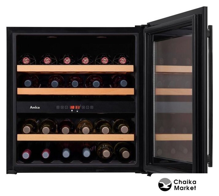 встраиваемый, 2 зоны температуры, 17 бутылок