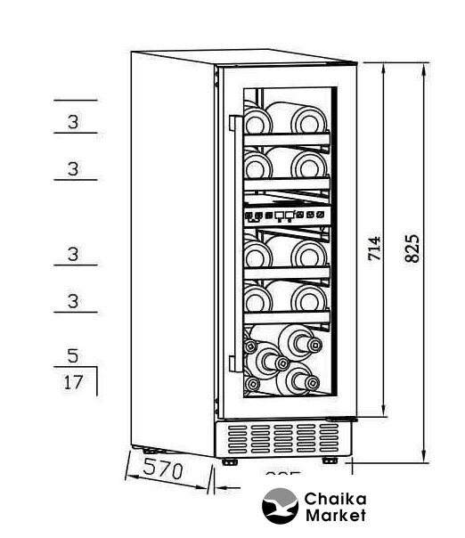 встраиваемый, 1 зона температуры, 18 бутылок