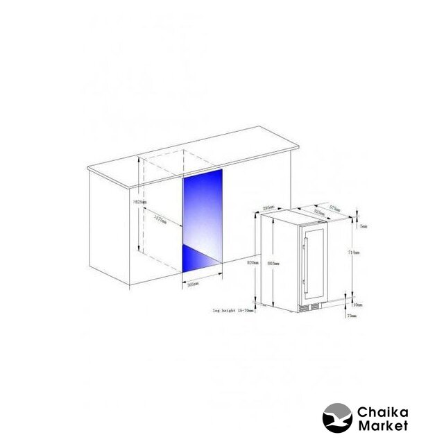 встраиваемый, 2 зоны температуры, 17 бутылок