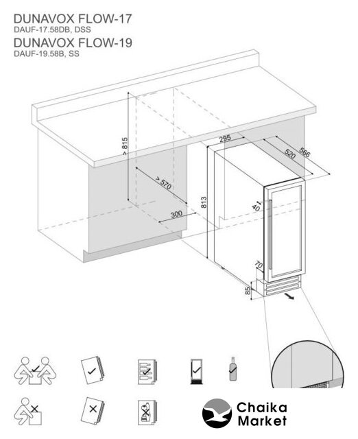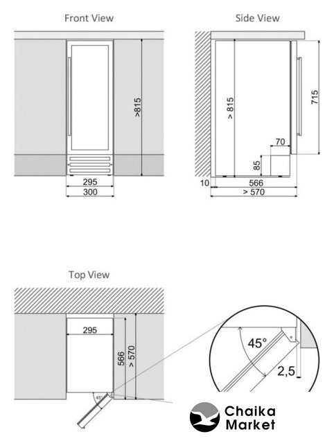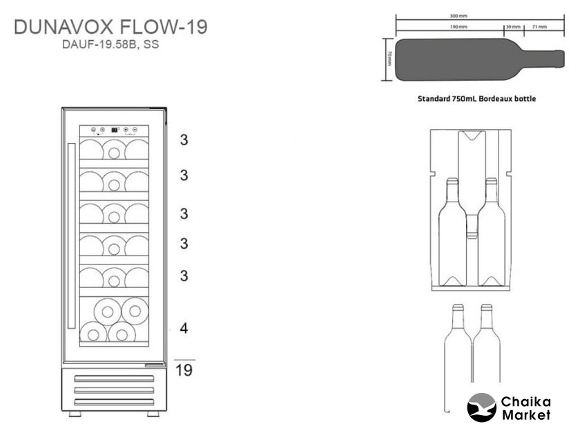 встраиваемый, 2 зоны температуры, 57 бутылок