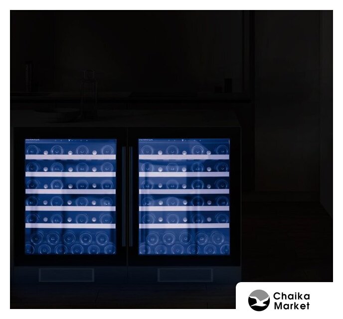 встраиваемый, 2 зоны температуры, 46 бутылок