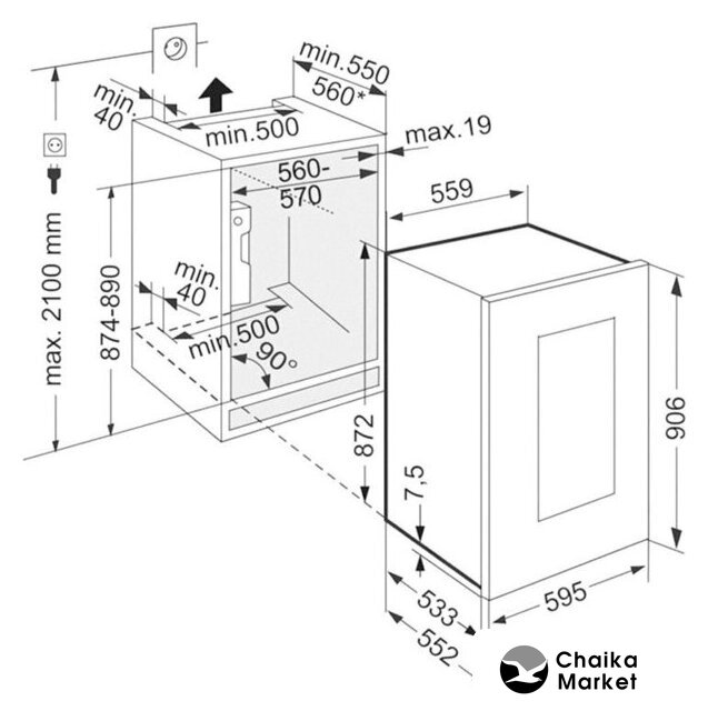 встраиваемый, 2 зоны температуры, 38 бутылок