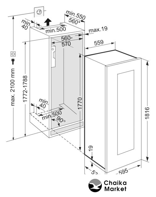 встраиваемый, 2 зоны температуры, 51 бутылка