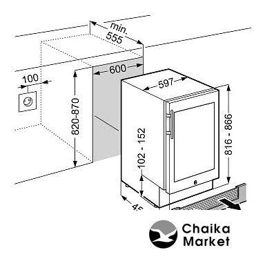 встраиваемый, 2 зоны температуры, 34 бутылки