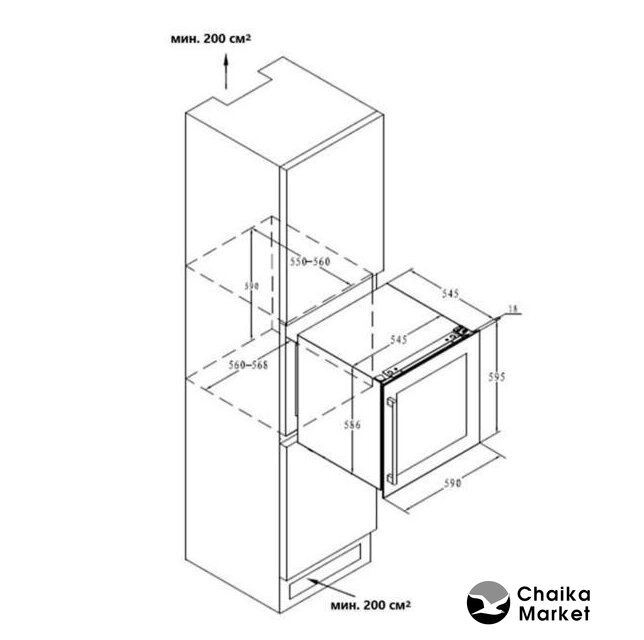встраиваемый, 2 зоны температуры, 17 бутылок