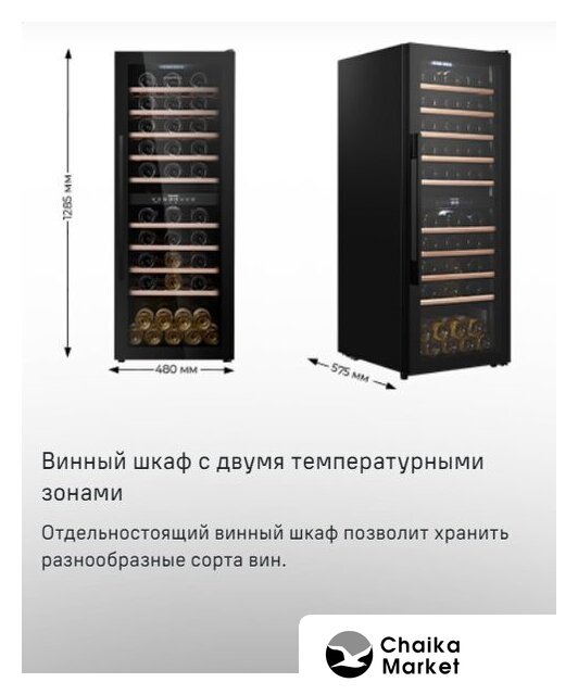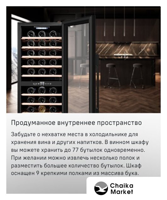 отдельностоящий, 2 зоны температуры, 77 бутылок