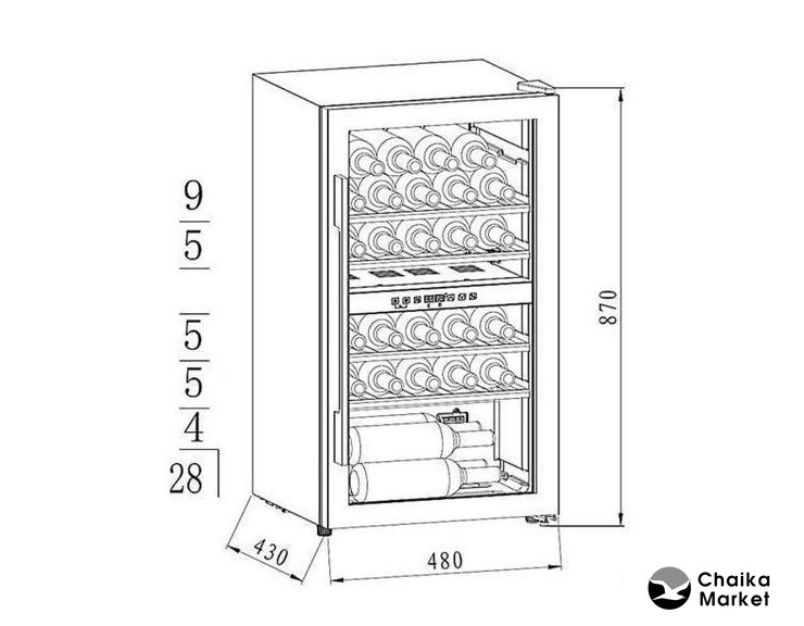 встраиваемый, 1 зона температуры, 7 бутылок