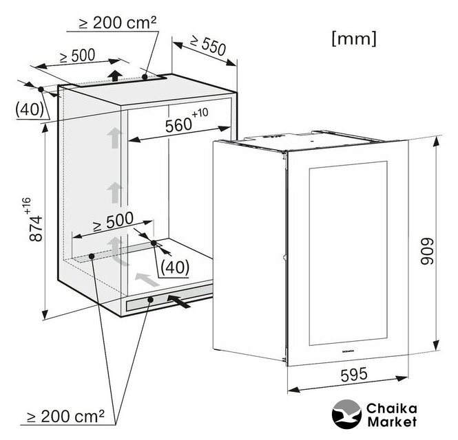 встраиваемый, 2 зоны температуры, 83 бутылки