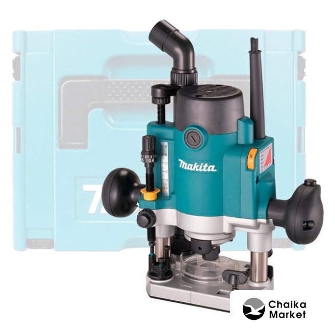 Комплектация | - Патрубок для пылесоса- Стружкоотвод- Цанговый патрон 8 мм- Направляющая для шаблона- Параллельный упор- Монтажный ключ - 2 шт- MakPac 2 |