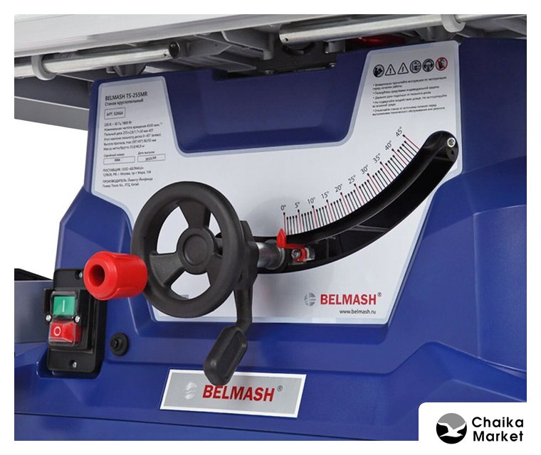 Комплект поставки | - Станок круглопильный- Подставка складная- Рама опорная- Штанга выдвижная опорная- Расширение стола боковое (правое, левое)- Расширение стола заднее- Колесо- Ножка опорная с тормозом в сборе- Нож расклинивающий- Кожух защитный пильного диска- Упор параллельный- Упор дополнительный для узких заготовок- Упор угловой- Направляющая углового упора- Толкатель- Ручка для перемещения станка- Комплект ключей- Комплект крепежа- Диск пильный (255×2,8/1,7×30 мм 40Т)*- Руководство по эксплуатации |