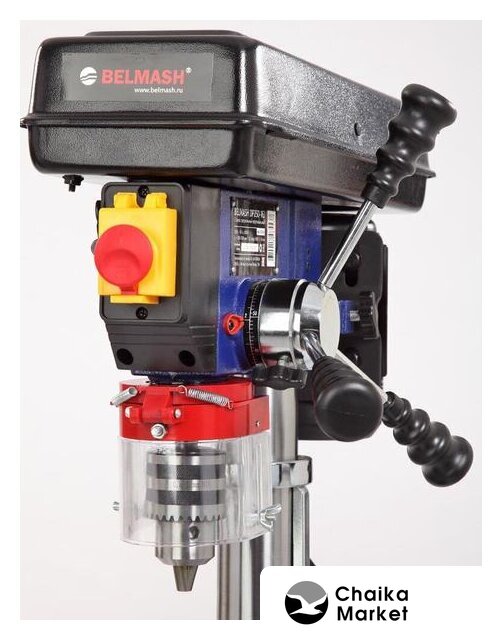 Комплект поставки | - Сверлильная головка в сборе;- Основание станка;- Стол рабочий с кронштейном в сборе;- Колонна с рейкой и фланцем в сборе;- Патрон сверлильный ключевой трехкулачковый;- Ключ патрона;- Выколотка (расклиниватель);- Рукоятка-фиксатор;- Ручка подъема/опускания рабочего стола;- Ручка подачи 3шт;- Тиски (63,5 мм);- Экран защитный;- Комплект ключей шестигранных;- Комплект крепежа;- Руководство по эксплуатации;- Упаковка. |
