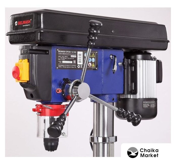 Комплект поставки | - Сверлильная головка в сборе - 1;- Основание станка - 1;- Стол рабочий - 1;- Колонна с рейкой, фланцем и кронштейном в сборе - 1;- Патрон сверлильный - 1;- Ручка подачи - 3;- Рукоятка-фиксатор - 2;- Ручка подъема/опускания рабочего стола - 1;- Экран защитный - 1;- Тиски (76,2 мм) - 1;- Выколотка (расклиниватель) - 1;- Ключ шестигранный - 3;- Комплект крепежа - 1;- Руководство по эксплуатации - 1;- Упаковка - 1. |