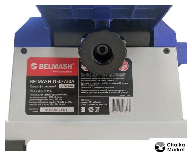 Комплект поставки | - Станок фуговальный;- Параллельный упор;- Рукоятка фиксации угла наклона параллельного упора;- Каретка параллельного упора;- Кронштейн каретки параллельного упора;- Пружина;- Рукоятка фиксации положения параллельного упора;- Блок зажимной;- Фильтр-мешок;- Патрубок стружкоотвода;- Упор для рук;- Толкатель;- Набор ключей;- Комплект крепежа;- Руководство по эксплуатации;- Упаковка. |