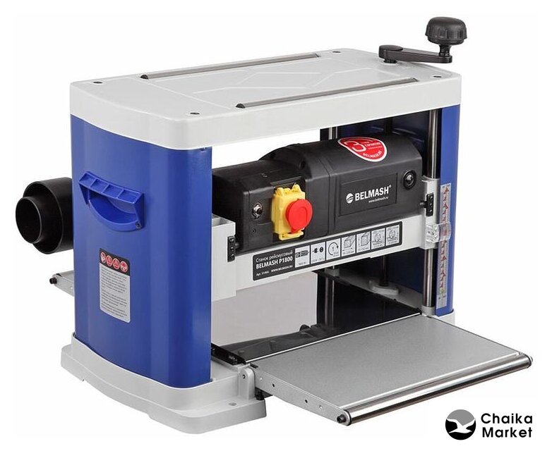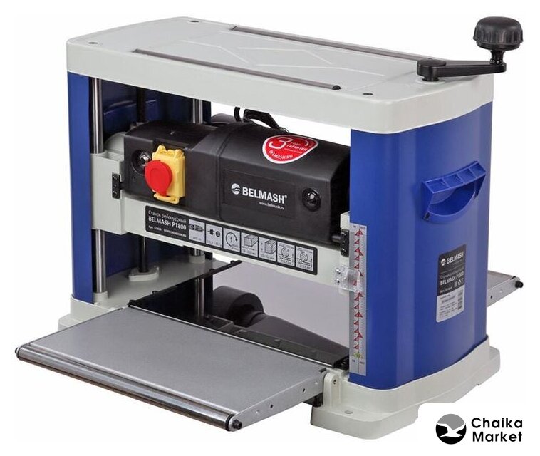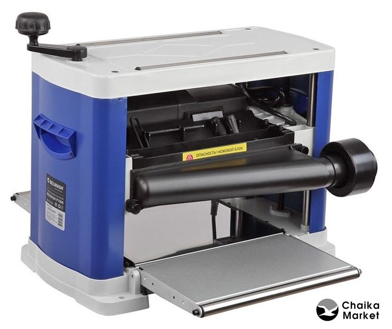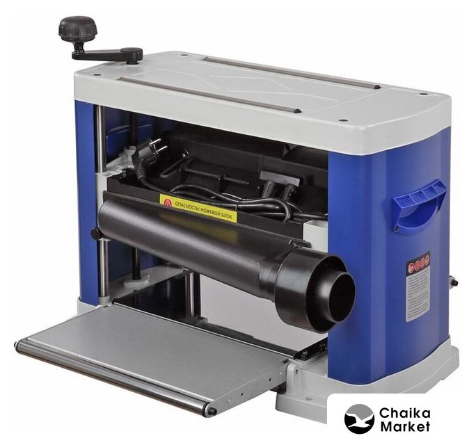 Комплект поставки | - Станок рейсмусовый;- Ручка в сборе;- Шайба плоская;- Болт;- Ключ шестигранный;- Кожух стружковыброса;- Винт-барашек 2шт;- Переходник/адаптер;- Магнит 2шт;- Нож строгальный 2шт;- Руководство по эксплуатации;- Упаковка. |