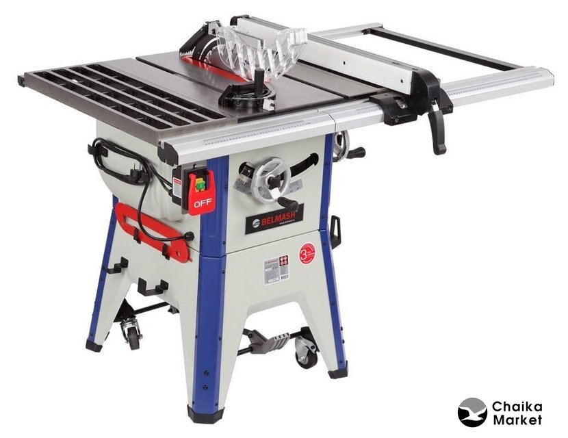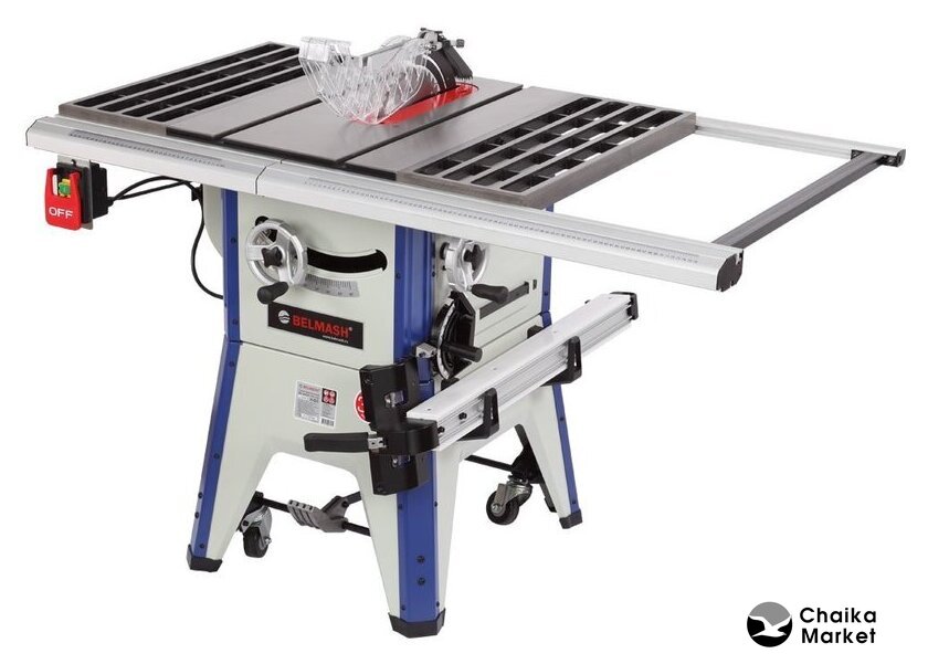 | Комплект поставки | Станок в сборе 1;Опора ролика 4;Руководство по эксплуатации 1;Комплект инструмента 1;Комплект крепежа 1;Выключатель в сборе 1;Панель основания «с» 1;Панель основания «в» 1;Панель основания «а» 2;Опора угловая 8;Опора задних роликов в сборе 1;Опора передних роликов в сборе 1;Пластина соединительная для роликов 1;Толкатель 1;Кожух защитный пильного диска 1;Защитный элемент от обратной отдачи в сборе (гребенка) 1;Ролик 4;Секция стола дополнительная 2;Держатель кабеля питания 2;Кронштейн для хранения толкателя 2;Кронштейн для хранения кожуха пильного диска 2;Кронштейн для хранения параллельного упора 2;Маховик с ручкой 2;Направляющая задняя 2;Переходное кольцо 16 / 30 мм 1;Вставка под диск DADO 1;Направляющая передняя 2;Угловой упор в сборе 1;Параллельный упор в сборе 1;Патрубок для отвода стружки 1;Вставка пильного стола 1;Планка 1;Упаковка 1. |
