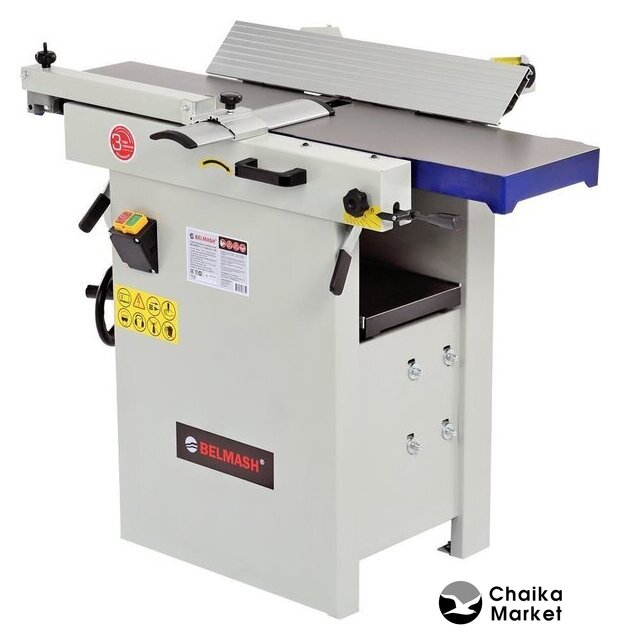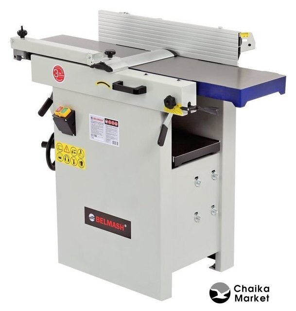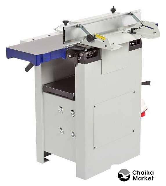 | Комплект поставки | - Станок фуговально-рейсмусовый в сборе- Упор параллельный с основанием в сборе- Ограждение ножевого вала в сборе с кронштейном- Ручка-фиксатор- Шайба специальная- Шаблон для настройки строгальных ножей- Ключ шестигранный- Винты для крепления параллельного упора- Вилка (тип 515) для подключения к сети 400 (380) Вольт- Прижим ручной- Упаковка- Руководство по эксплуатации |