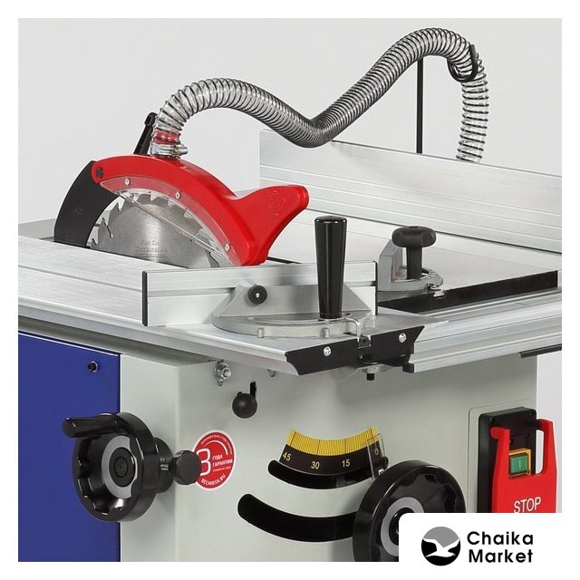 | Комплект поставки | - Станок круглопильный;- Стол дополнительный боковой;- Опора регулируемая стола бокового;- Стол подвижный;- Вставка пильного стола;- Упор параллельный в сборе;- Передняя направляющая параллельного упора;- Маховик* - 2;- Ручка маховика* - 2;- Ручка блокировки маховика;- Кожух пильного диска (в сборе);- Нож расклинивающий*;- Шланг кожуха пильного диска;- Держатель шланга кожуха пильного диска;- Угловой упор основного рабочего стола;- Угловой упор подвижного стола;- Ограничитель;- Панель основания передняя;- Панель основания задняя;- Панель основания боковая - 2;- Пильный диск (254×30 мм)*;- Патрубок для отведения стружки;- Хомут для крепления шланга кожуха пильного диска - 2;- Толкатель;- Штифт блокировки вала;- Комплект крепежа;- Комплект инструментов;- Руководство по эксплуатации;- Упаковка.*деталь может быть установлена на станок |