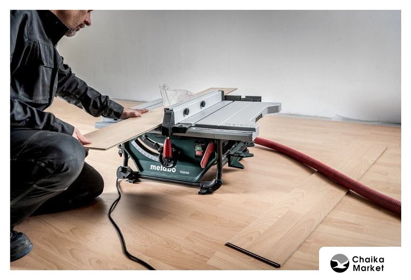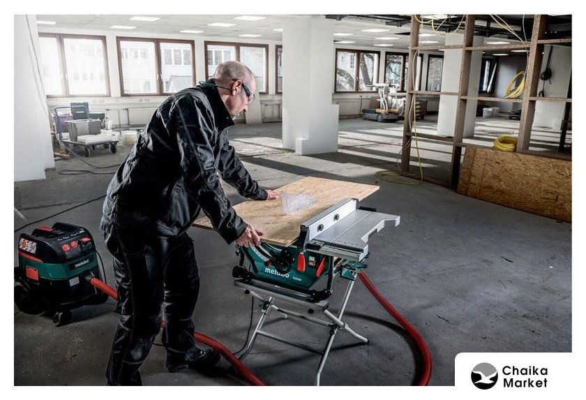Комплект поставки | Твердосплавное пильное полотно с переменным зубом (40 зубьев)Шины из твердой резиныПараллельный упорУгловой упорУдлинение столаРасширение стола (справа)Отделение для пильных полотенТолкатель |