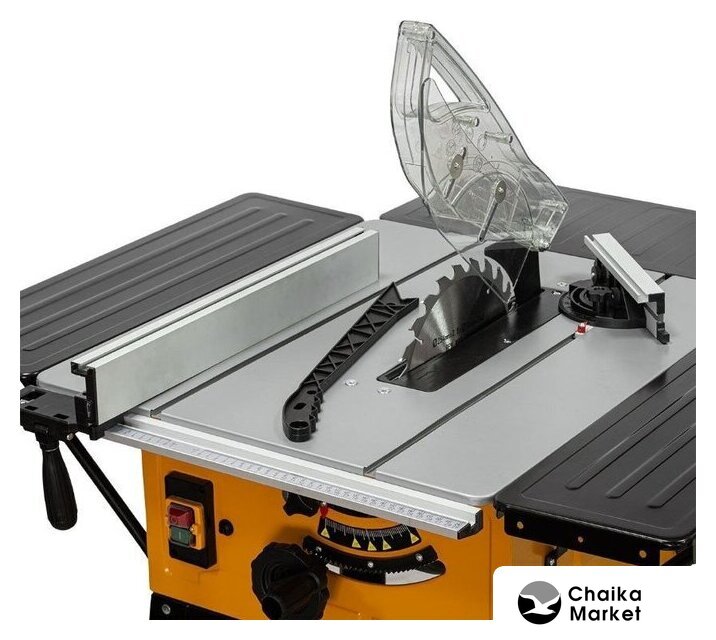 Комплект поставки | • станок циркулярный• стол дополнительный (3 шт)• поперечный упор• защитный кожух пильного диска• параллельный упор• опорные стойки (вертикальные) (4 шт)• опорная планка для выдвижного стола (6 шт)• перекладина для устойчивости (2 шт)• толкатель• основной корпус• резиновые ножки (4 шт)• длинная крестовина (2 шт)• короткая крестовина (2 шт)• открытый ключ• закрытый ключ• L−образный ключ• винты с круглой головкой ⌀6x12 мм (36 мм)• пружинная шайба ⌀6 мм (36 мм)• плоская шайба ⌀6 мм (44 мм)• гайка ⌀6 мм (44 мм) |