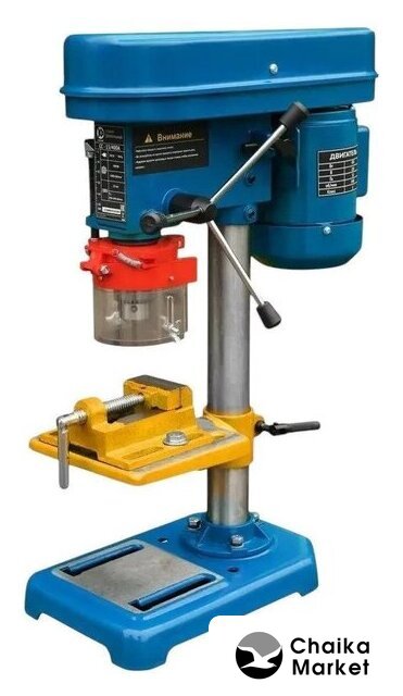 Комплект поставки | - Суппорт (корпус) с двигателем и ременной передачей в сборе- Основание/колонна с фланцем- Рабочий стол с хомутом крепления и затяжным болтом в сборе- Тиски в сборе/монтажный комплект- Патрон сверлильный/экран защитный- Рукоятка ворота с набалдашником- Руководство по эксплуатации- Упаковка |