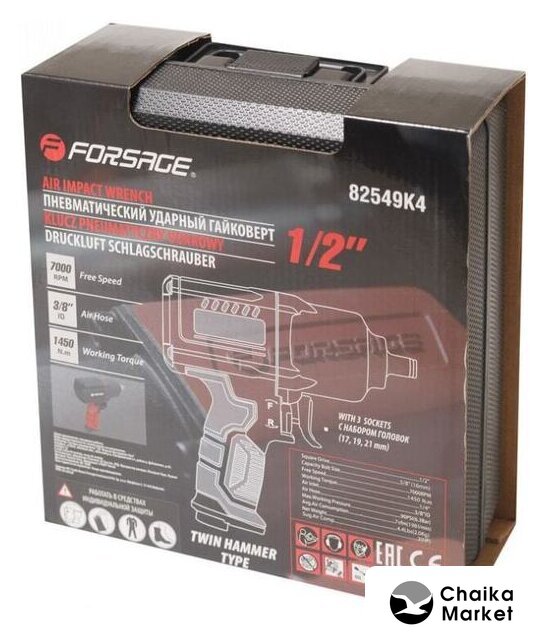 ударный, 1450 Нм, 7000 об/мин, расход воздуха: 198 л/мин, давление: 6.3 бар, 2000 г
