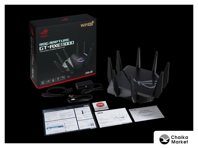 | Комплектация | - ASUS ROG Rapture GT-AXE11000- Блок питания- кабель LAN длиной 1,5 м- Руководство по установке |