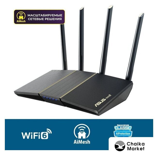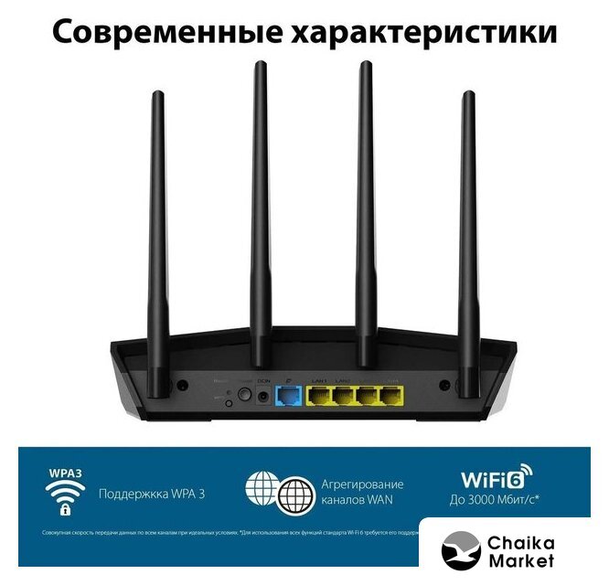 802.11ax (Wi-Fi 6), 2.4 ГГц/5 ГГц, до 1501 Mbps, WAN, 2xGigabit LAN