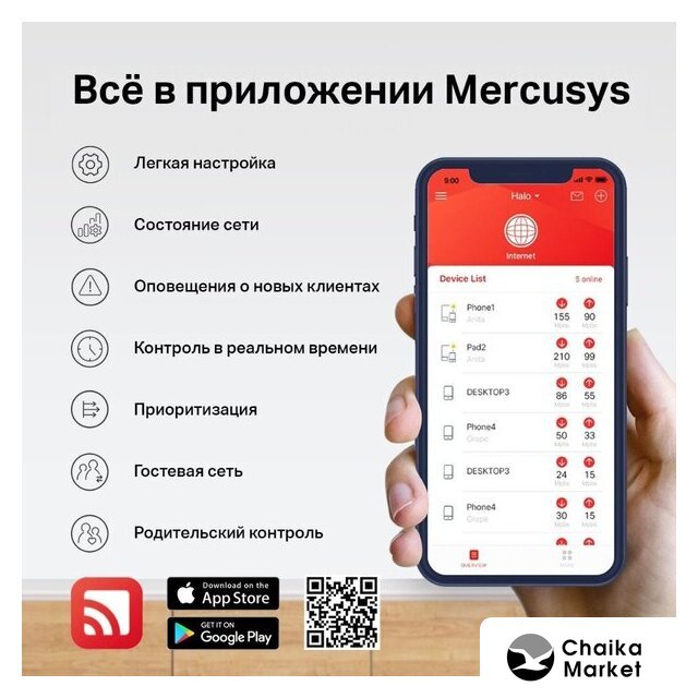 | Комплектация | • Роутер• Адаптер питания• Руководство по быстрой настройке• Кабель Ethernet RJ45 |