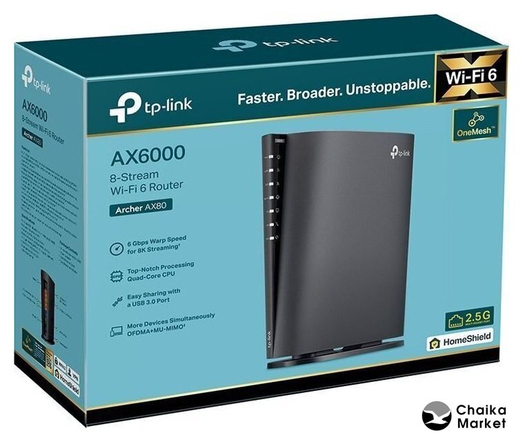 | Комплектация | Wi-Fi роутер Archer AX80Адаптер питанияКабель Ethernet RJ45Краткое руководство по установке |