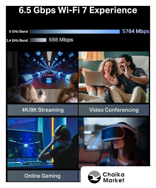 802.11ax (Wi-Fi 6E), 2.4 ГГц/5 ГГц/6 ГГц, до 7800 Mbps, WAN, 4xGigabit LAN, 1x2.5 Gigabit LAN, 1xUSB