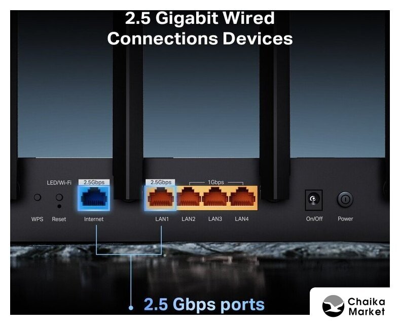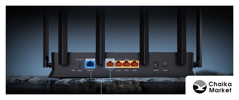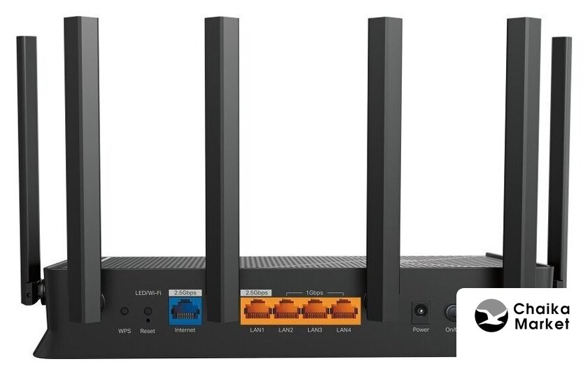 802.11ax (Wi-Fi 6), 2.4 ГГц/5 ГГц, до 6000 Mbps, WAN, 4xGigabit LAN, 2x2.5 Gigabit LAN, 1xUSB