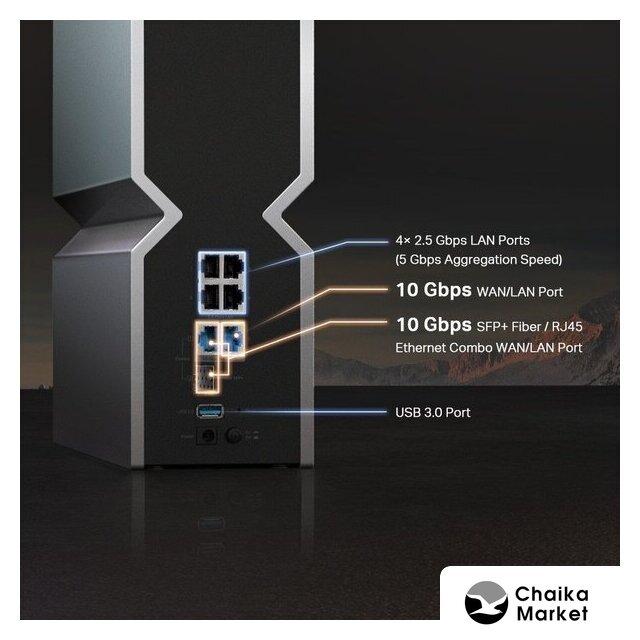802.11ax (Wi-Fi 6E), 2.4 ГГц/5 ГГц/6 ГГц, до 7800 Mbps, WAN, 5xGigabit LAN, 1x2.5 Gigabit LAN, 1xUSB