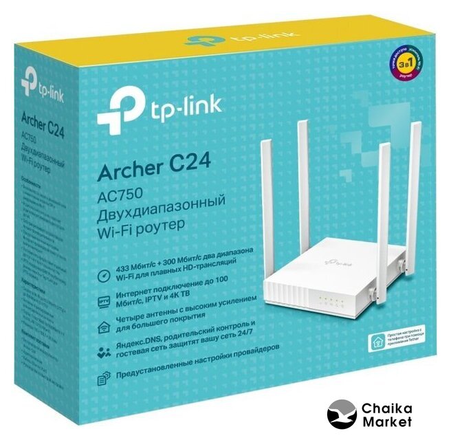 802.11ac (Wi-Fi 5), 2.4 ГГц/5 ГГц, до 1167 Mbps, WAN, 3xGigabit LAN