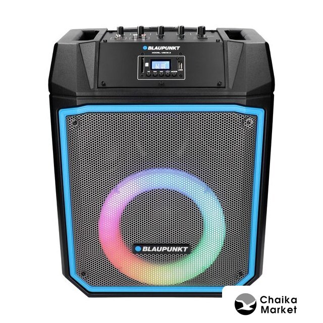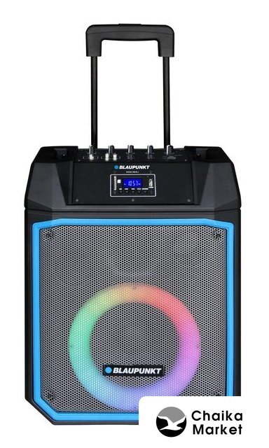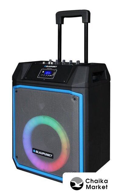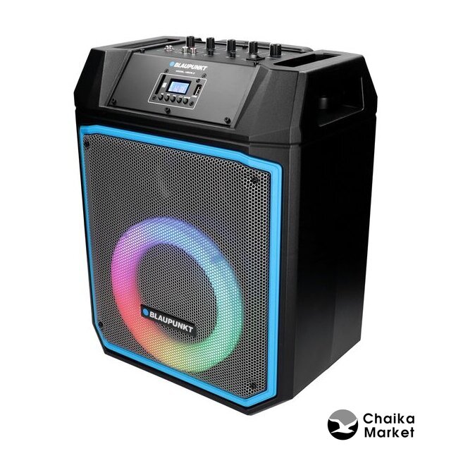 номинальная мощность 100 Вт, воспроизведение с USB/microSD, питание от сети и аккумулятора, BT 5.0, AUX, время работы: 3 ч.