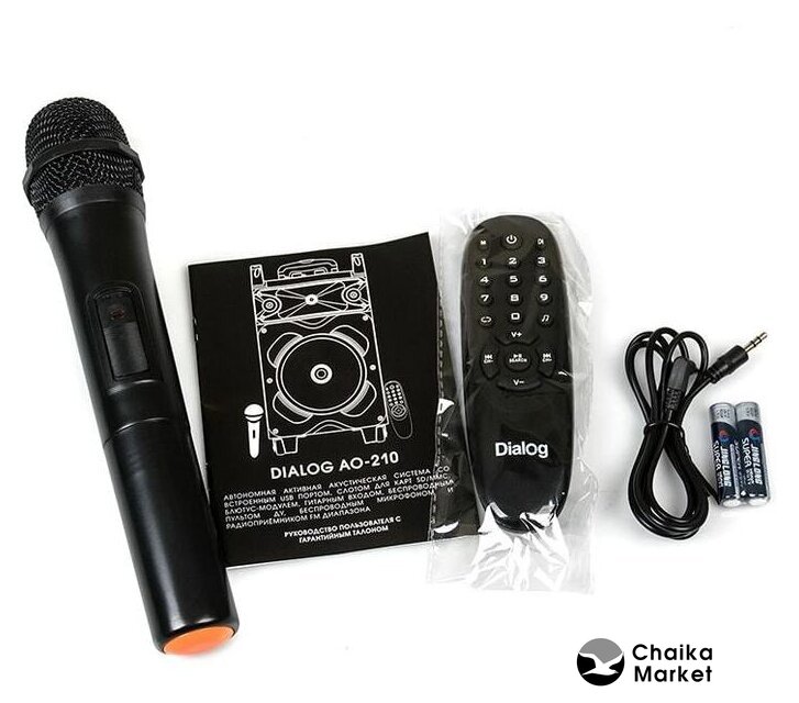 | Комплектация | - кабель питания;- аудиокабель 3.5 мм;- пульт ДУ;- беспроводной микрофон; |