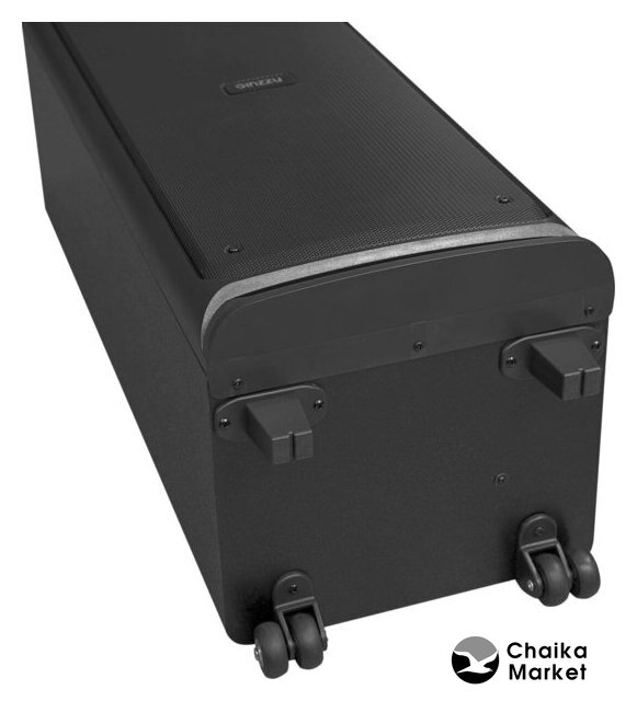 номинальная мощность 150 Вт, воспроизведение с USB/microSD, питание от аккумулятора, BT, NFC, AUX, время работы: 20 ч.