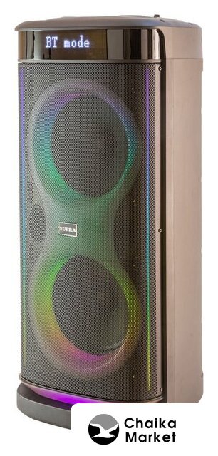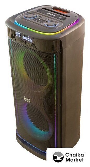 номинальная мощность 100 Вт, воспроизведение с USB/microSD, питание от аккумулятора, BT 5.0, AUX, время работы: 6 ч.