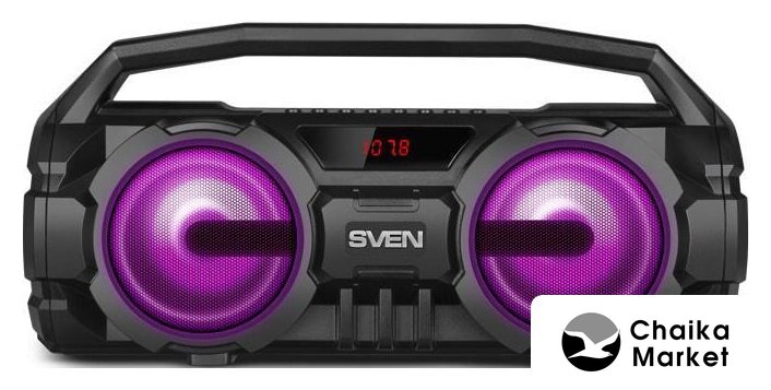 номинальная мощность 65 Вт, воспроизведение с USB/microSD, питание от аккумулятора, BT, AUX, время работы: 16 ч.