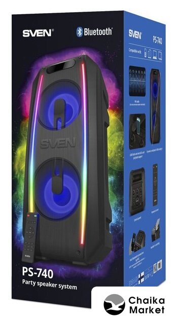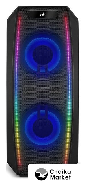номинальная мощность 60 Вт, воспроизведение с USB/microSD, питание от аккумулятора, BT 5.3, AUX, время работы: 5 ч.