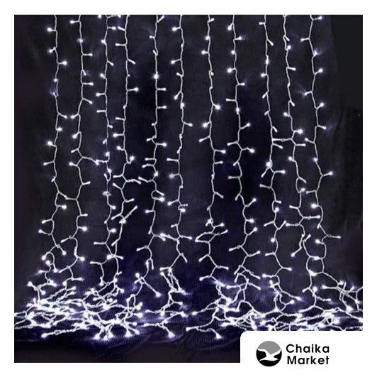 дождь (занавес), для использования в помещении/на улице, длина 2 м, 440 ламп, питание от сети, свечение мерцающее, IP65, 110 Вт, провод прозрачный ПВХ