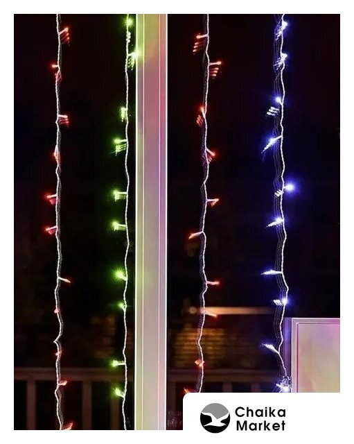 дождь (занавес), для использования на улице, длина 3 м, 400 ламп, питание от сети, свечение постоянное/мерцающее, IP65, провод белый резиновый