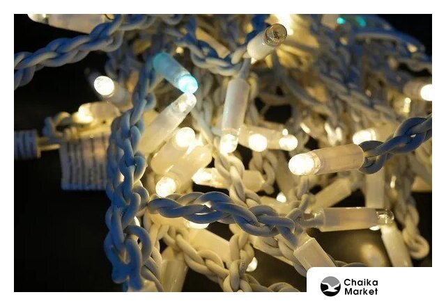 дождь (занавес), для использования на улице, длина 3 м, 400 ламп, питание от сети, свечение постоянное/мерцающее, IP65, провод белый резиновый